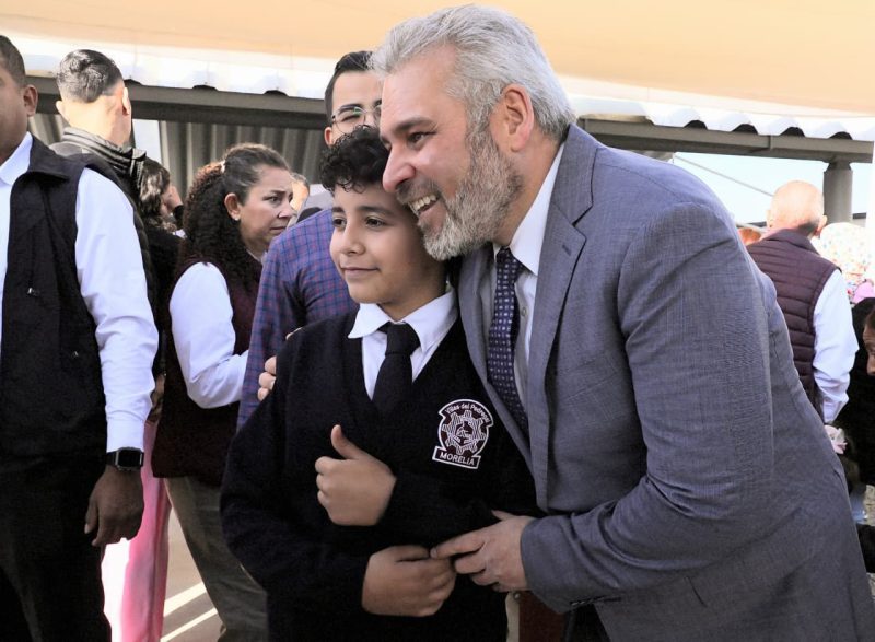 Acompañaron al gobernador Raúl Zepeda Villaseñor, secretario de Gobierno; Luis Navarro García, secretario de Finanzas y Administración; Alfonso Martínez Alcázar, presidente municipal de Morelia; Ernesto Núñez Aguilar, diputado federal; Andrik Aldair Medina Contreras, secretario particular del Despacho del Gobernador; Jacqueline Farfán Izquierdo, directora de la escuela; José Roberto Santillán Ferreyra, presidente del Consejo Coordinador Empresarial; Alejandro Vargas Acosta, presidente de la CMIC delegación Michoacán.